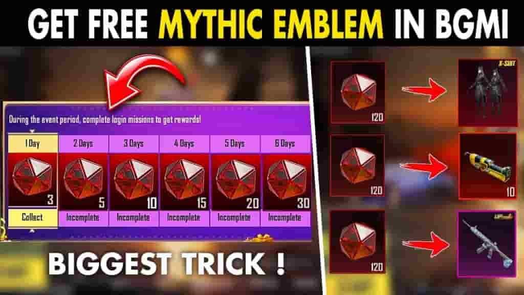 Finish the missions and events every day to get free Mythic Emblems. Find additional ways to farm emblems: primarily in clan and game modes. Genuine Ways to Get Free Unlimited Mythic Emblems in BGMI
